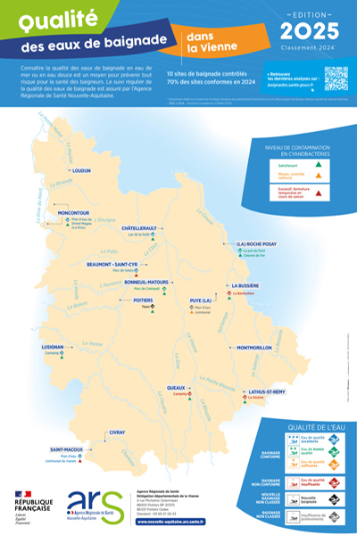 Cartes des baignades au format .pdf : Landes, Lot-et-Garonne, Pyrénées-Atlantiques, Deux-Sèvres, Vienne, Haute-Vienne